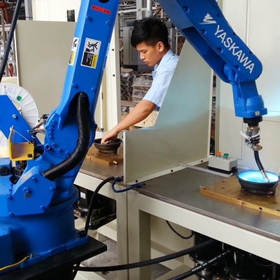 该设备用机器人自动完成汽车零配件的二氧化碳保护焊及计数、批次设定